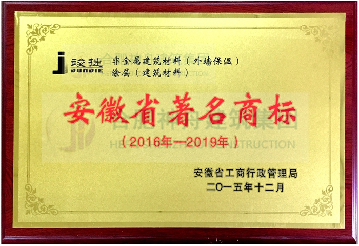 “竣捷”牌勻質(zhì)改性防火保溫板、耐堿玻璃纖維網(wǎng)格布、真石漆通過安徽省經(jīng)濟和信息化委員會的評審,榮獲了安徽省新產(chǎn)品榮譽證書
